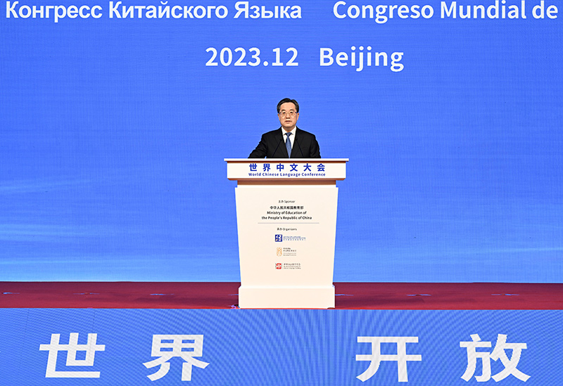 丁薛祥指出,中文是中国的语言,也是世界的语言。推进新形势下的国际中文教育和世界语言交流合作,需要中国和世界各国人民共同努力。要构建开放包容的国际中文教育格局,与各方一道办好孔子学院等中文项目,大力发展信息化、数字化、智能化中文教育,支持各国培养本土师资、研发本土教材、开展本土化中文教学。更好发挥中文社会服务功能,不断提升中文的社会应用价值,支持和鼓励更多国际组织将中文列为官方语言,欢迎更多国际场合使用中文,积极服务各国经济社会发展。深化中外语言交流合作,通过“请进来”与“走出去”相结合,加强中文与世界各国语言的双向交流,支持各国青少年来华体验中国文化、展示各国文化,增进彼此友谊和心灵沟通。促进文明互学互鉴,秉持开放包容,强化守正创新,共同推动世界多元文明繁荣发展。