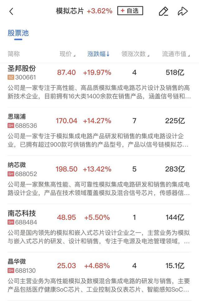半导体再度活跃,模拟芯片方向涨幅居前,圣邦股份20CM涨停,思瑞浦、纳芯微涨超10%,帝奥微、南芯科技、晶华微涨幅居前。