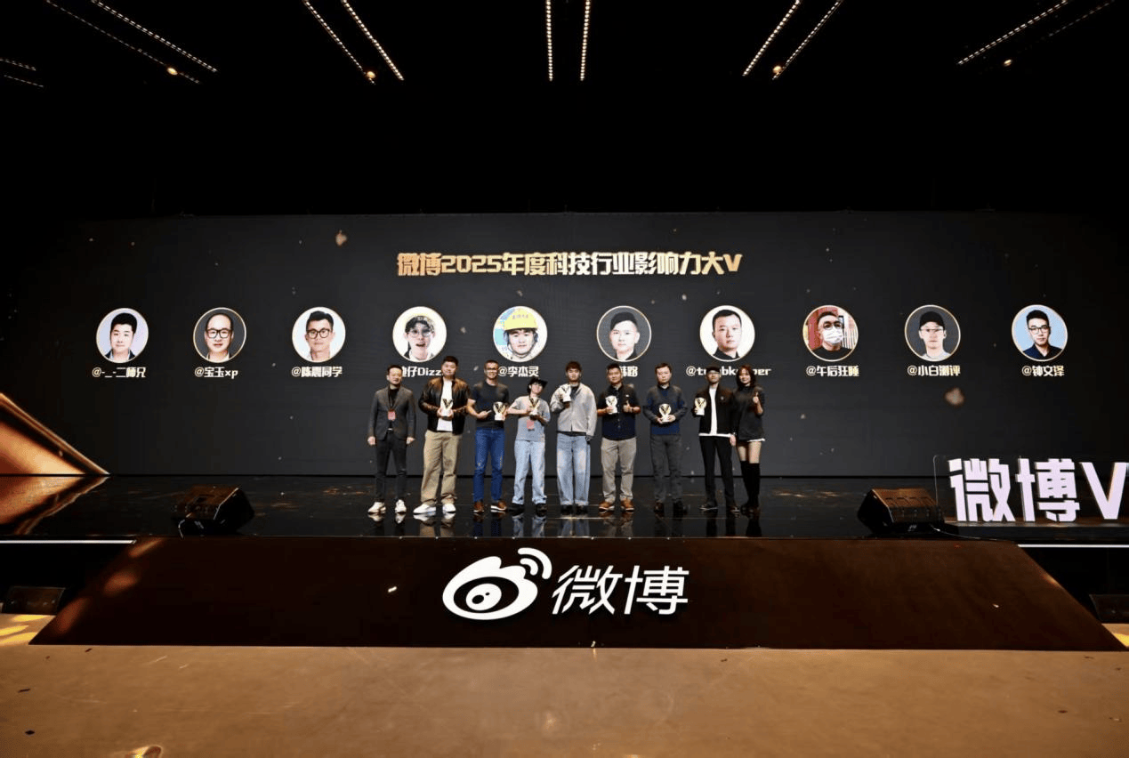 大会为@宝玉xp@迪仔Dizzz@韩路 等博主颁发“微博2025年度科技行业影响力大V”荣誉。他们用专业与热情,让深奥的知识变得触手可及,也让科技的价值超越了实验室与会议室,走进了更多人的生活。