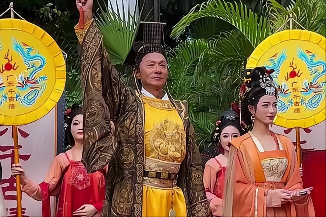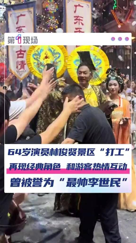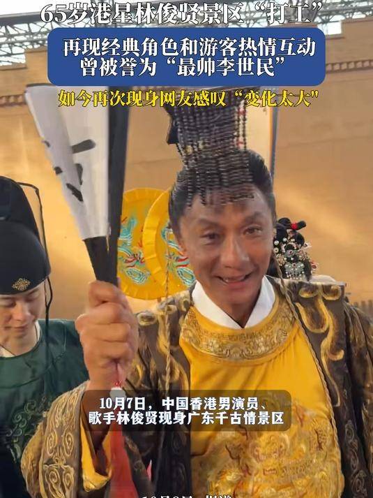 10月6日,有不少游客在广东千古情景区参观游览时,看到了在景区充当npc扮演李世民的林俊贤。