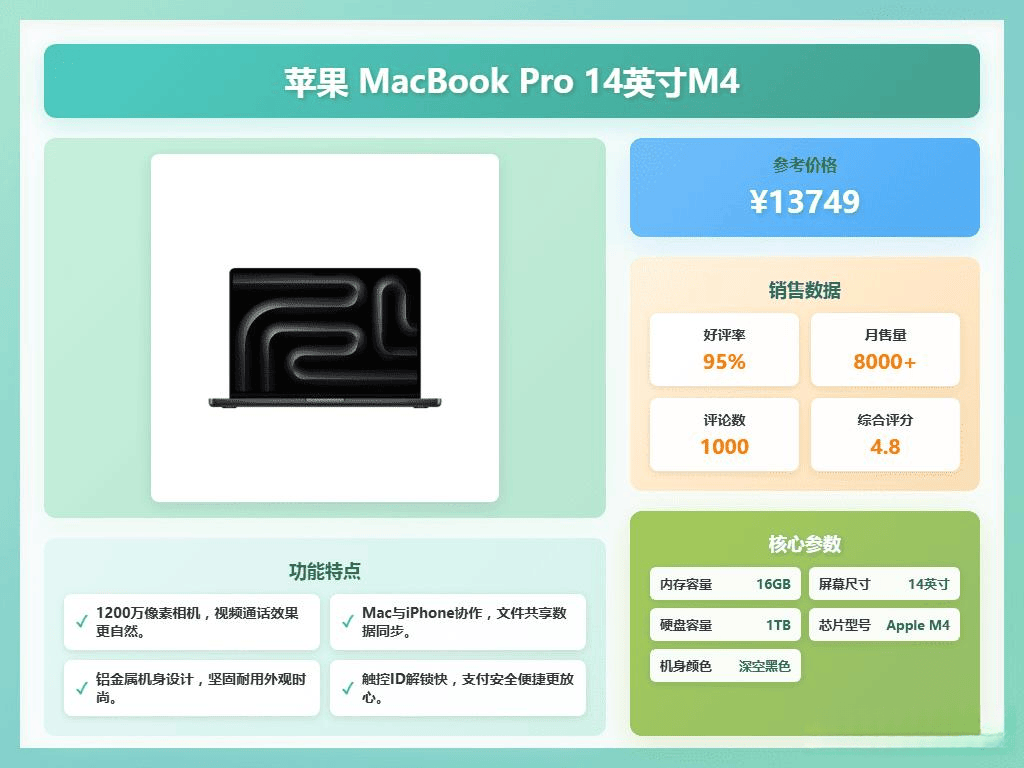 还有一点,预算也是关键。在自己的预算范围内,尽量选择配置更高的型号,这样才能用得更久。除了硬件配置,苹果笔记本的软件生态也是一大优势。macOS系统的流畅性和稳定性是出了名的,而且苹果的生态系统非常完善。如果你已经在使用iPhone、iPad等苹果设备,那么使用MacBook会更加得心应手,因为它们之间的协同性非常高。