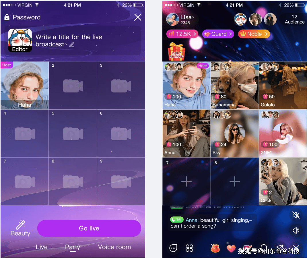 这是中东、北非等地区最受欢迎的功能。用户可创建或加入公开/私密语音房,支持多人同时在线,具备“上麦/下麦”机制,营造类似线. 视频直播