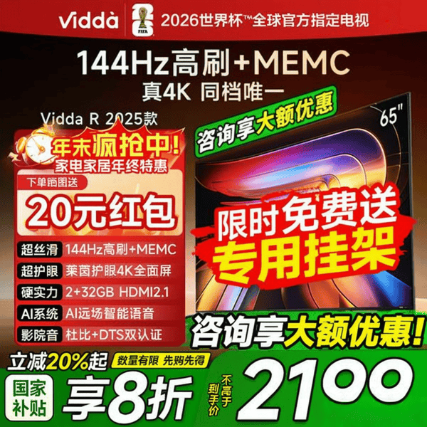 为了让大家少走弯路,我特意做了功课,整理了这份“2026年Vidda平板电视选购指南:六款热门型号深度测评”。无论是画质更清晰,还是音效更震撼,这里都有你想要的信息,绝对能帮你找到最适合自己的那一款,客厅影院升级就靠它啦!下面我为大家挑选了六款,感兴趣的朋友们可以继续了解。