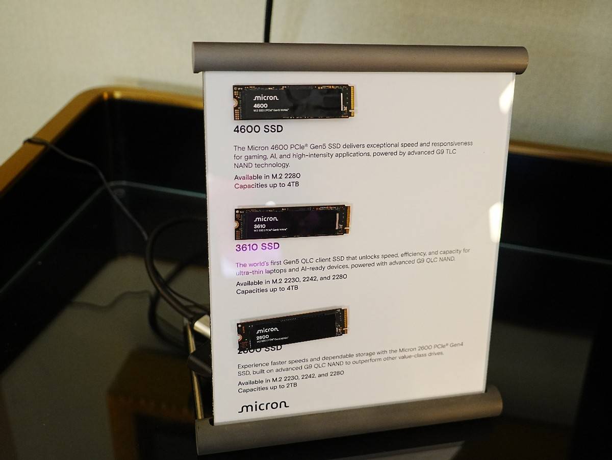 在CES 2026上,美光并非仅聚焦于美光3610 NVMe™ SSD这一颗明星。同期展示的还有此前已发布、备受业界关注的美光4600 PCIe® 5.0 NVMe™ SSD。作为美光首款采用G9 TLC NAND的客户端PCIe 5.0 SSD,该系列凭借翻倍于前代的极致性能,主要服务于追求顶级性能的游戏玩家、内容创作者和专业工作站用户,展现了美光在高端性能领域的领先能力。