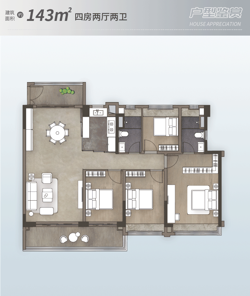 A 区 143㎡的 4 房两卫户型位于 2 梯 3/4 户,采用南北对流 4 房双阳台设计。这种设计使得室内空气流通顺畅,通风效果极佳,能有效保持室内空气清新。总价大概在 400 - 540 万,望湖楼栋价格近 600 万左右,好楼层可达 630 万。双阳台的配置,一个可用于晾晒衣物,另一个可打造为休闲阳台,摆放绿植、桌椅,享受悠闲时光。四个房间空间较为宽敞,可灵活布置,满足不同家庭成员的需求。主卧套房设计,配备独立卫生间和衣帽间,为主人提供了私密舒适的休息空间。该户型适合对居住品质有较高追求,注重通风和空间功能性的改善型购房者。