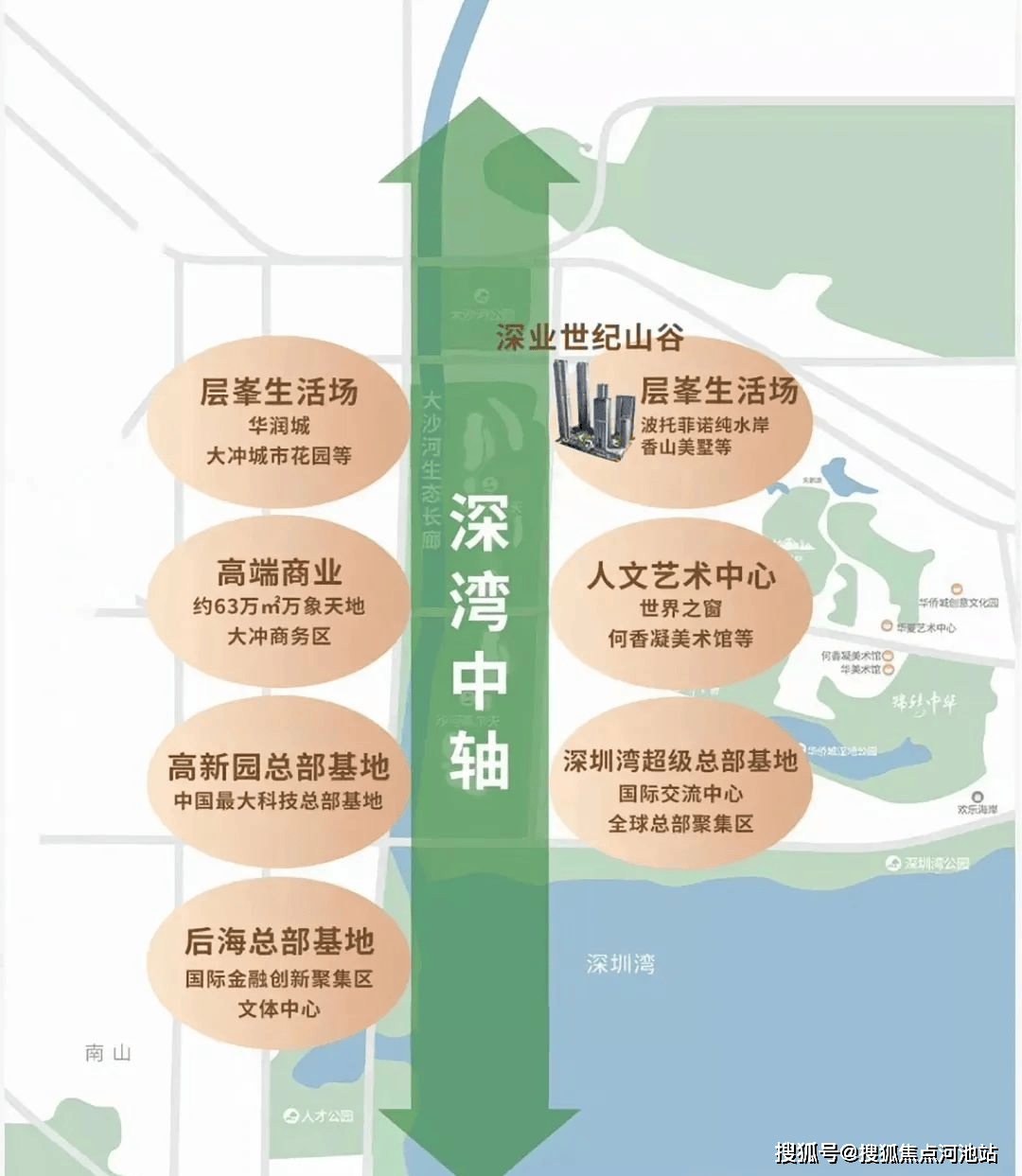北有留仙洞总部基地,西有深圳湾高新区总部基地、后海总部基地,南接深圳湾超级总部基地,四大超核引擎环绕。