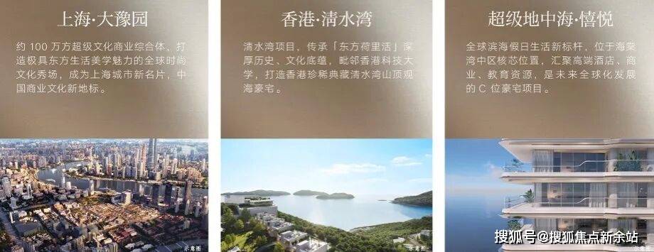 以国际中心城市为坐标,标定每个城市核心地段,实现稀缺资源独占,突破传统产品价值形态,打造颠覆性、差异化、稀缺度的产品形态。