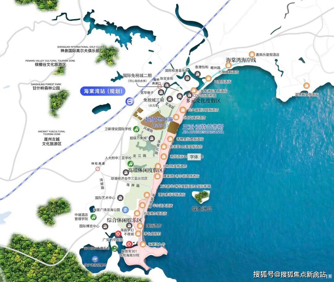◎通达交通属性——距离海岸线 公里,距离海南环岛高速路约 4 公里,通往高铁站及机场都十分便利,未来还规划了海棠湾高铁站,建成后出行更加便利。