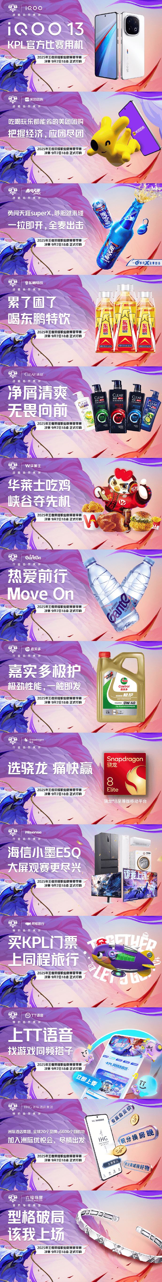 2025年KPL官方比赛用机 iQOO 13 ,打游戏就用iQOO 13,职业选手都在用;吃喝玩乐都能省的美团团购,把握经济,应团尽团;勇闯天涯superX,一拉即开,全麦出击,够胆就来碰;喝东鹏特饮,加满能量,制胜全场无人能挡;净屑止痒,控油清爽,清扬为每位峡谷勇士增添能量,助你头脑清醒,成为王者传奇!华莱士吃鸡,峡谷夺先机,美味出击,带飞全局;热爱前行喝景田,披荆斩棘,唯有热爱与梦想同行;嘉实多极护,极劲性能,一触即发;选骁龙,痛快赢!旗舰手机,有骁龙更灵;海信,此刻是我,信念成金;华夏KPL王者梦之队联名卡,选我爱的卡面,领我爱的福利;来片炫迈无糖口香糖,美味持久,连击不停!买KPL门票,就用同程旅行APP和小程序;上TT语音,找游戏同频搭子;加入洲际优悦会,为热爱,尽情出发!六福珠宝,携王者之戒,见证每一个璀璨时刻!