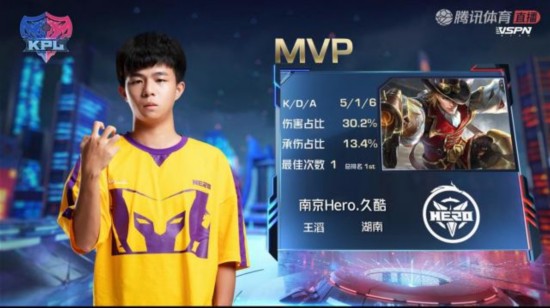 来到中期,上路南京Hero打出一波二换三,不知火舞拿到双杀,南京Hero的经济优势来到2000。主宰的一波团战,装备成型的马可波罗进场伤害爆炸拿下三杀。兵线进塔的南京Hero凭借优势,连续推掉高地和水晶。仅仅14分钟强势拿下比赛,本局MVP给到伤害爆炸的南京Hero.久酷的马可波罗。