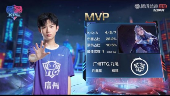 最后一波,广州TTG高低强开,直接秒掉蒙犽,一波零换二,广州TTG拿下比赛,将比分扳成2-2,本场比赛的MVP给到九尾的露娜。