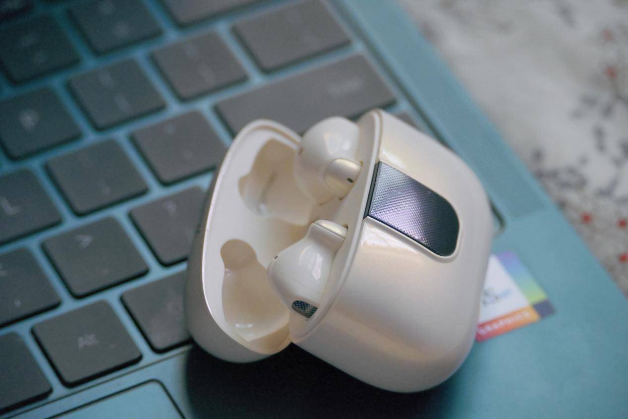 西圣AVA2 Pro的体型真的小巧又精致,外观设计把经典和时尚感融合得很自然,而且充电仓自带显示屏,一眼就能认出来,非常有辨识度。很多人担心佩戴舒适度,我亲测下来,简直像没戴一样,单耳只有4g,搭配Buoyancy人体工学设计,佩戴感可以说是轻到飞起,长时间戴也完全没压力。